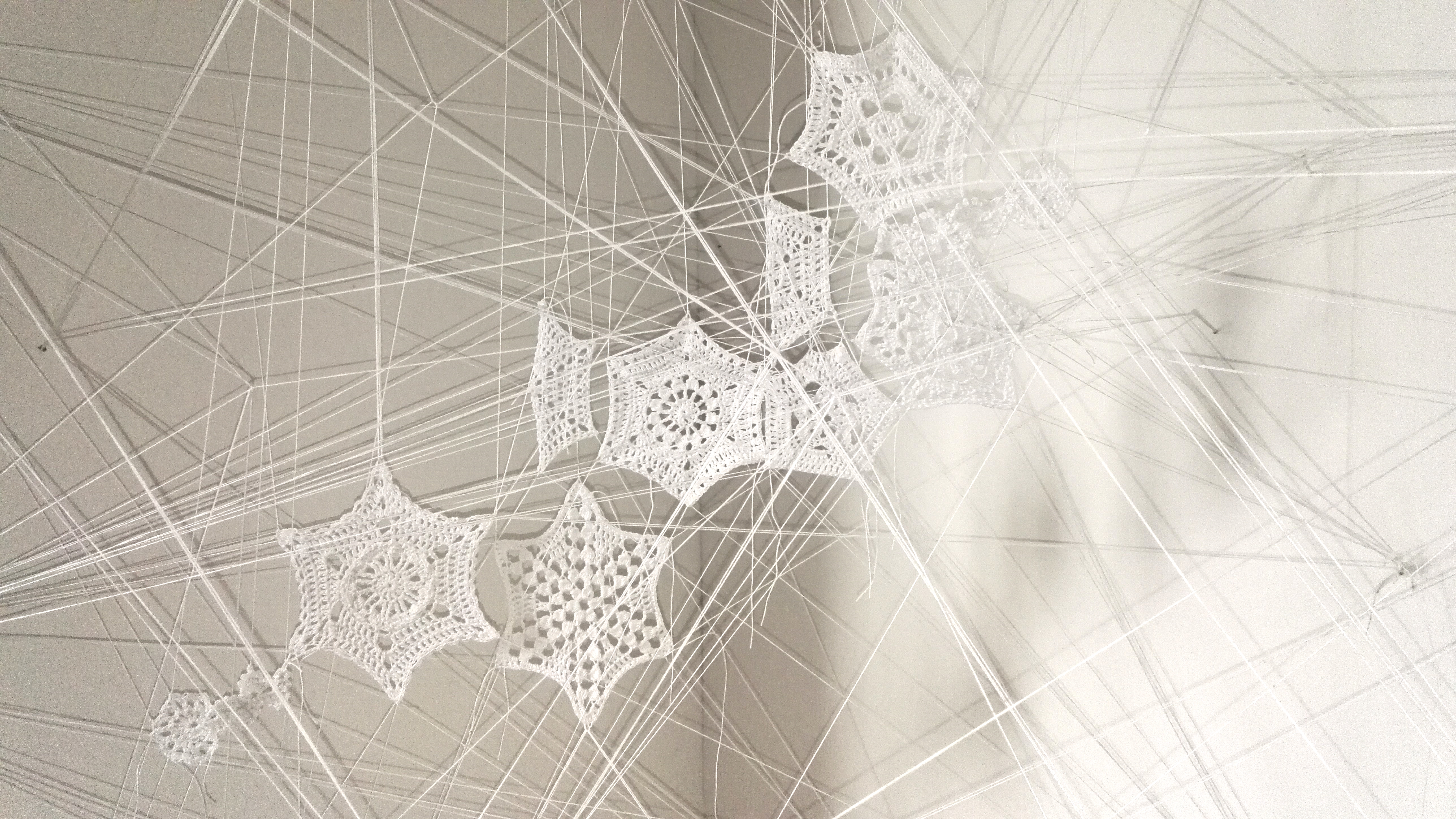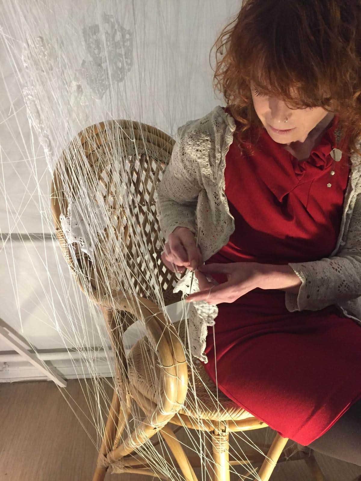 Generational trauma and behavioural patterns moving between family members is the theme of this work. In a building on the grounds of the former mental institution at Lapinlahti in Helsinki, I crocheted myself to my work. I crocheted myself to the neural patterns of the past as I told the stories of my personal connection to family ties and knots, patterns and familial histories.
