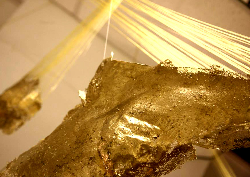 Lace Works Installation; gold lace body casts, gold string; approx. 40cm x 80cm