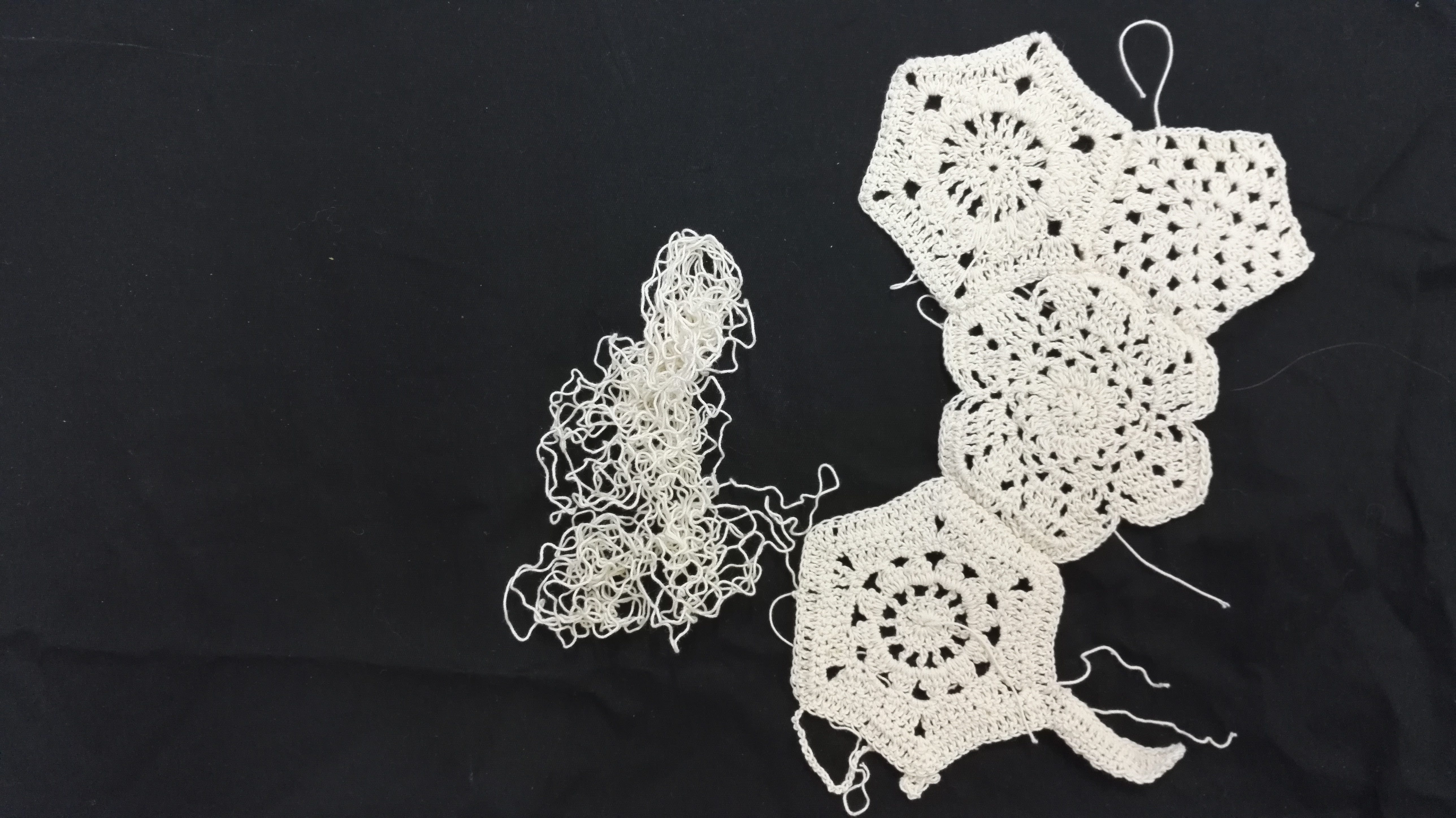 I am not a lace maker but I make lace yarns to help tell stories. I am not a knitter but I knit and tangle with the yarns that were given to me. I am a crochet maker; I make knots and patterns with the yarns of the past. I am a map maker; I draw the patterns of lives that were hidden for so long. To ‘Spin a Yarn’ means to tell a story. I spin yarns with my work. When I tell stories I think through the lineage and patterns that tangle craft stories together. Lines come together to create drawings and text; yarns knot and tie complex narratives together through crochet, lace and knit; blood-lines tell stories of behaviour patterns, knotting family tales with wider social and cultural structures. The patterns created reveals holes and gaps in the stories and invisible histories within the spaces between. I am not a lace maker but I make lace yarns to help tell these stories.